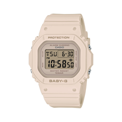 The classic BABY-G square look you love — now in an even slimmer, more compact design.The smaller BGD-565 case is 2.6mm shorter, 2.1mm narrower, and 1.2mm slimmer than its predecessor and is designed to appear flat when viewed from the side for an even thinner look.In versatile pink beige to match any fashion statement you choose, this watch is an ideal accessory any time of year.