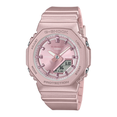 A metallic-pink sheen creates a smooth finish on the watch face of the GMAP2100ST-4A women’s watch. Unique in it’s design focus, Casio G-SHOCK is dedicated to fashionable style and unparalleled performance, andthe GMAP2100 seriesis the epitome of that focus. The octagonal bezel and band have been crafted from a bio-based resin thought to reduce environmental impact, while the pearlescent polarized coatings on both the band and bezel complement the metallic sheen of the dial to create a stunning style. Beauty, performance, and eco-friendly materials. This is not an ordinary pink watch: it’s a pink G-SHOCK.But what does that mean in terms of performance? Over 40 years of hard-earned wisdom go into this women’s watch, granting the GMAP2100ST-4A shock resistance upon which G-SHOCK has built its reputation. Add to that the 200-meter water resistance, and you have a pink watch that dazzles with its metallic sheen while remaining reliable year after year.Comfort is a leading design goal at G-SHOCK, and at only 40 grams, the GMAP2100ST-4A is a small watch that becomes imperceptible shortly after putting it on. At only 11.2 mm thick, this pink watch is as comfortable as it is beautiful