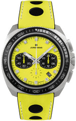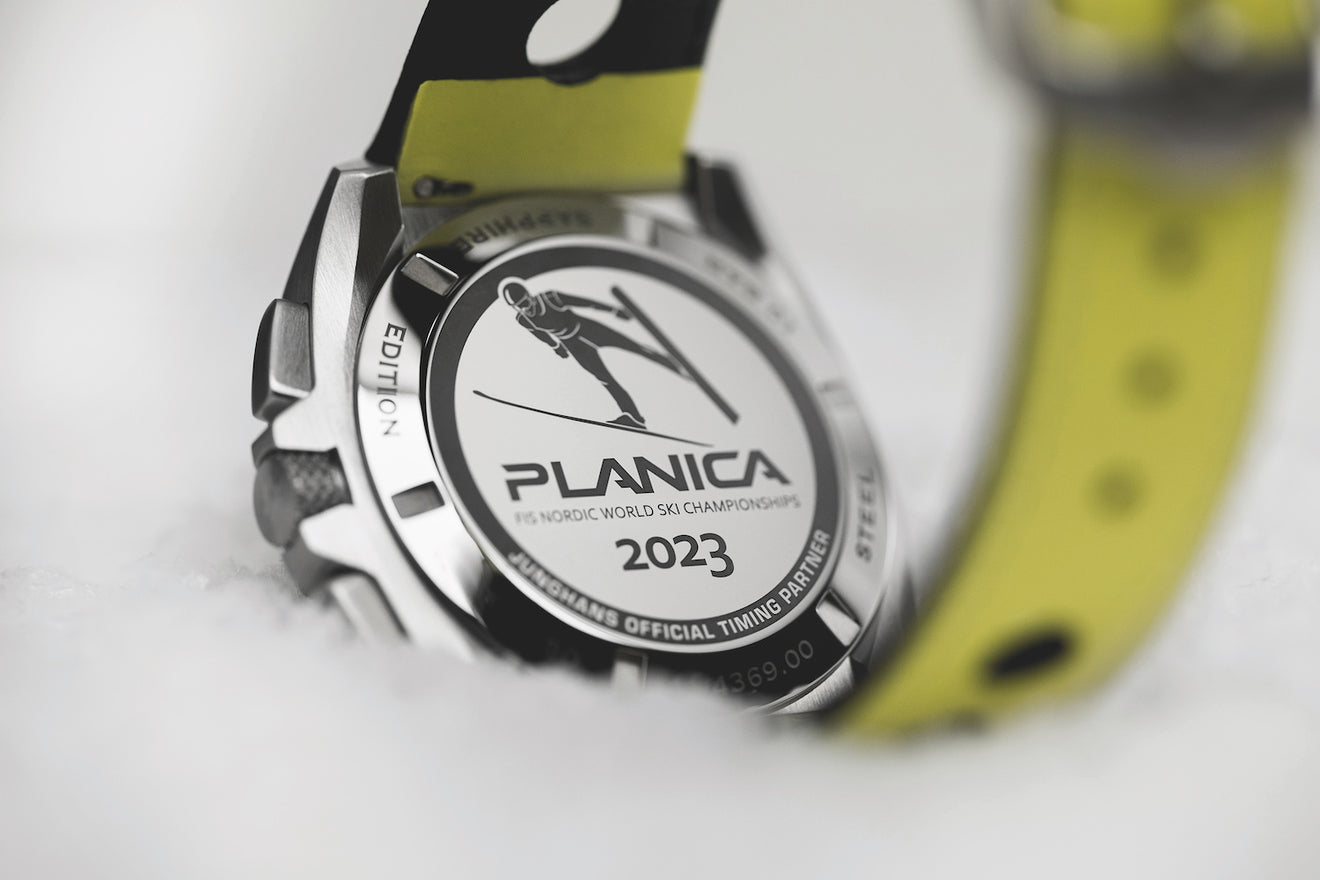 Junghans Watch 1972 Chronoscope FIS Lemon Quartz Limited Edition 41/4369.00. Junghans is the Official Timing Partner for the third time in a row, following Seefeld in 2019 and Oberstdorf in 2021, and is launching two sporting timepieces to celebrate; the 1972 Competition FIS Edition Lemon and the 1972 Chronoscope Quarz Edition FIS Lemon, each limited to 150 pieces. Both embody the Schramberg watchmaker's unique connection to winter sports. Junghans is represented not only as a sponsor, but also by brand ambassador Karl Geiger in the ski jumping competitions at Slovenia's largest sporting event in history.
