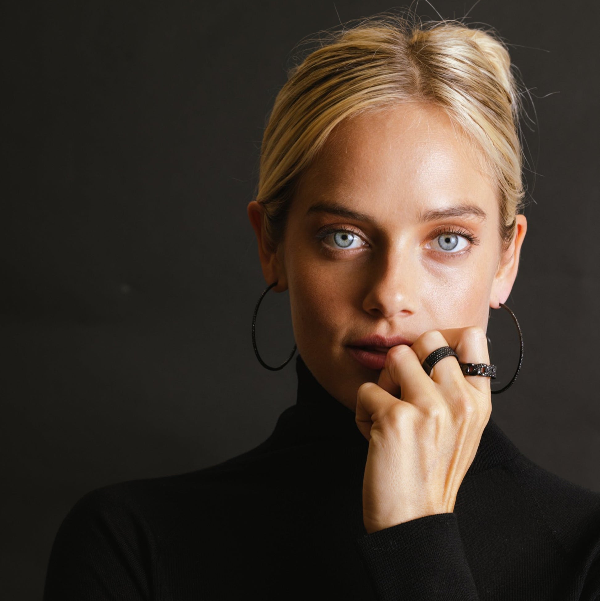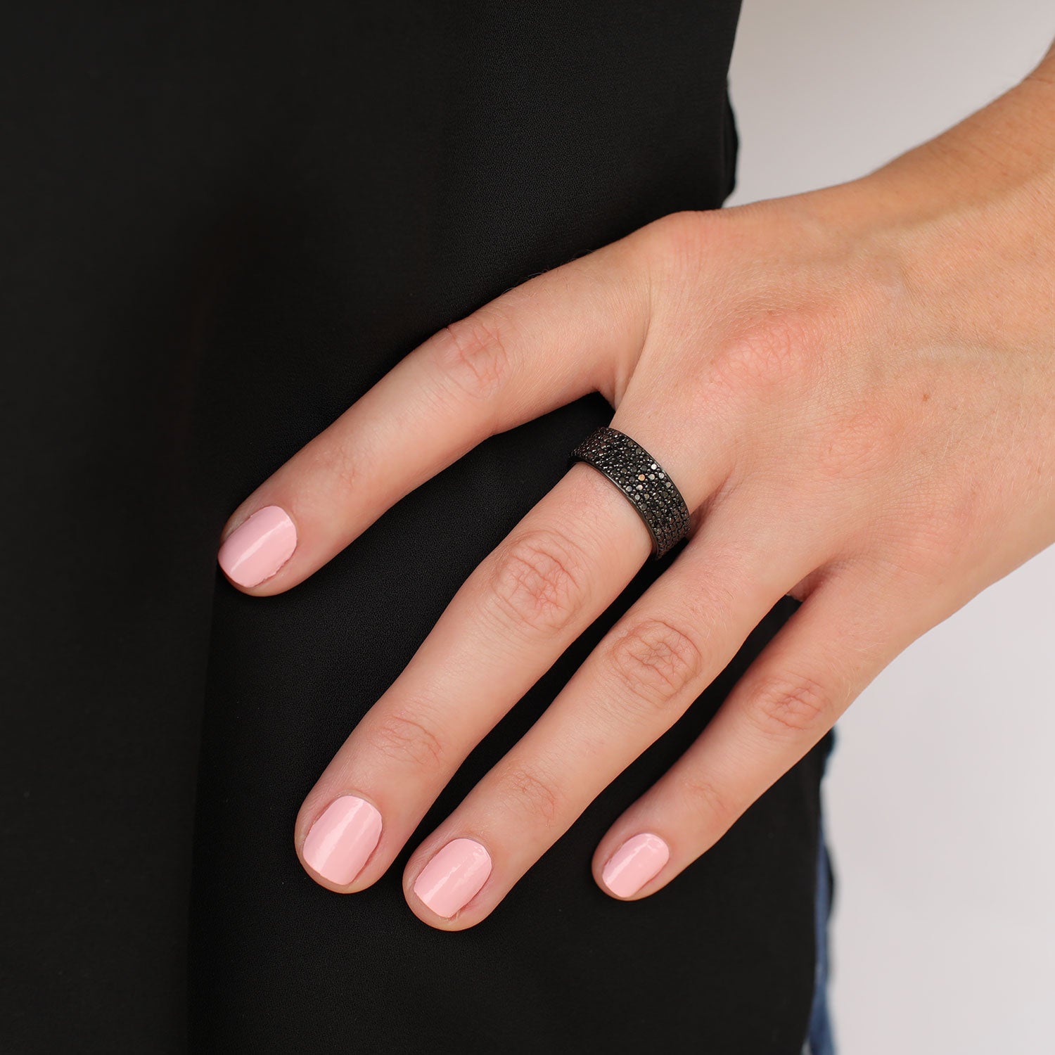 Sheryl's signature diamond cuff ring shrunk down to a mini size and set with black diamonds and jet black rhodium.