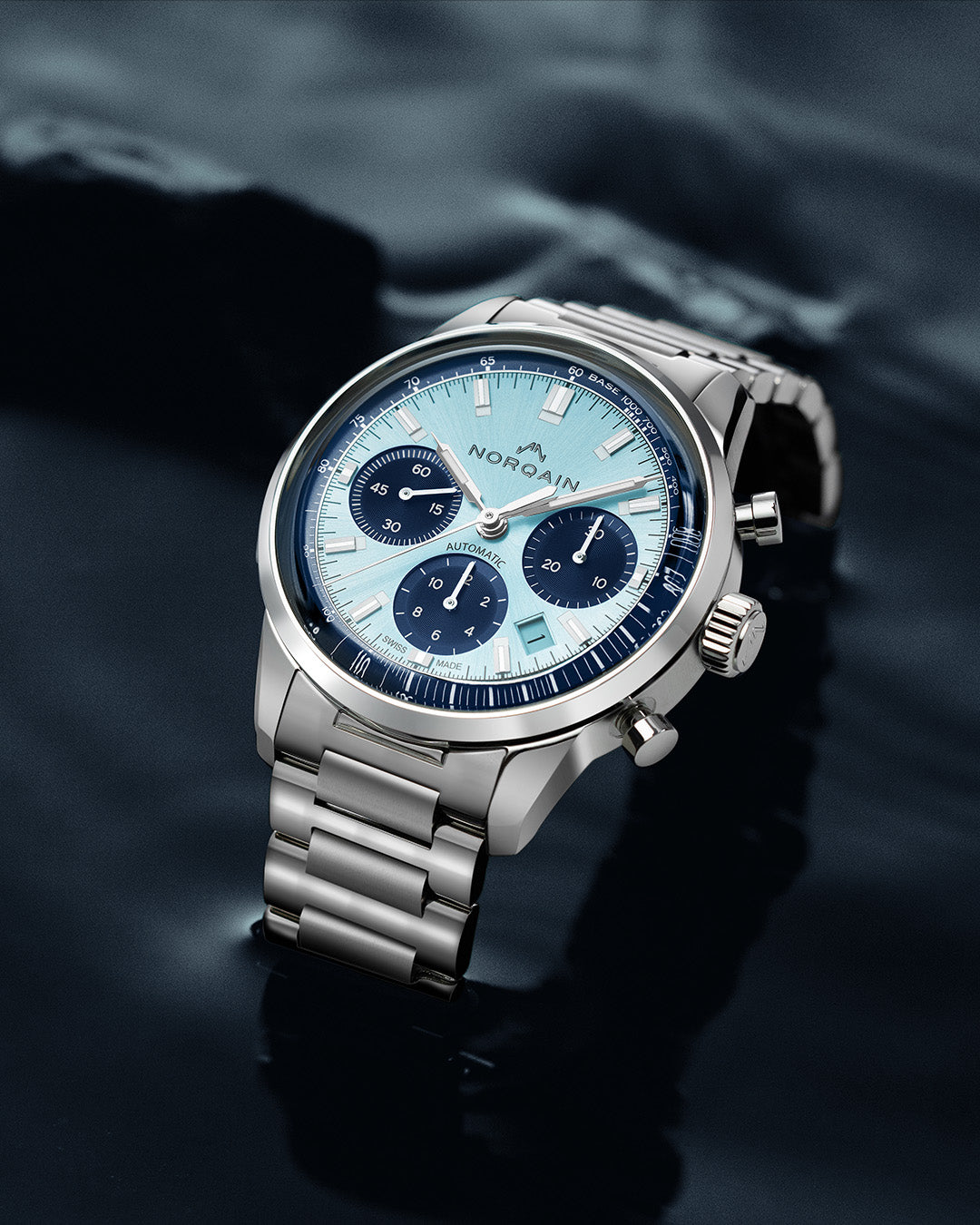 The Freedom collection is strongly tied to an appreciation of the great outdoors that carries across generations. The vintage-inspired design elements including the sky blue dial evoke the aesthetics of the 60s.