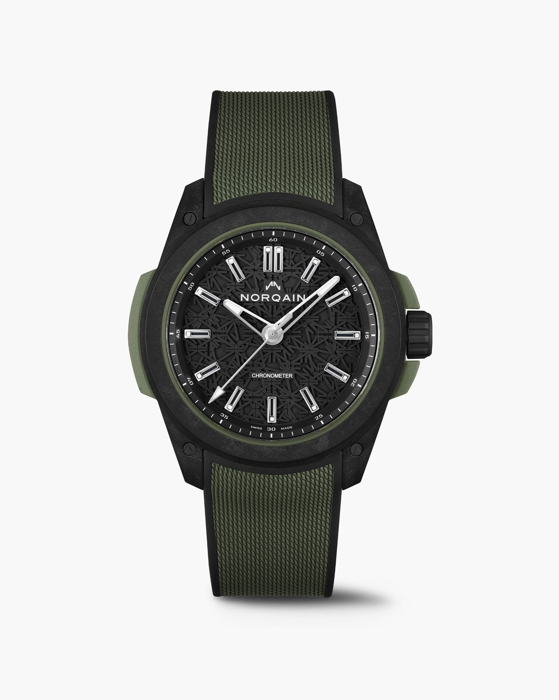 The Wild ONE, made with our proprietary, ultra-robust, and ultra-light NORTEQ® carbon fibre material, is the ultimate high-performance sports watch. Six times lighter than steel and 3.5 times lighter than titanium this Wild ONE has been designed in collaboration with Jean-Claude Biver, the NORQAIN team and the best Swiss suppliers.