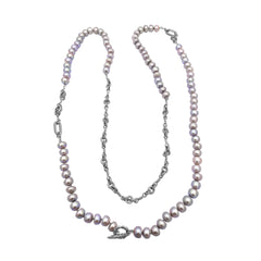 <p>Silver Pearl and Engraved Sterling Silver Necklace</p>