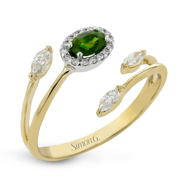 This delightful ring is sure to brighten your day - and turn heads - with its colorful gemstones, sparkling diamonds and unique bypass design.