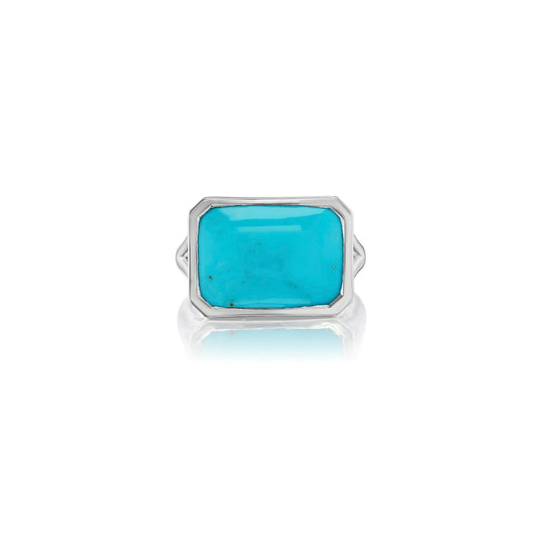 The Joni Emerald Cut Cabochon Ring - Turquoise