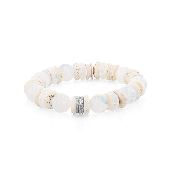 White Mix Bead Bracelet with 3 Diamond Rondelles - 10mm