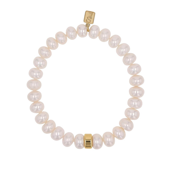 White Pearl Beaded Bracelet with 14k Smooth Rondelle - 8mm