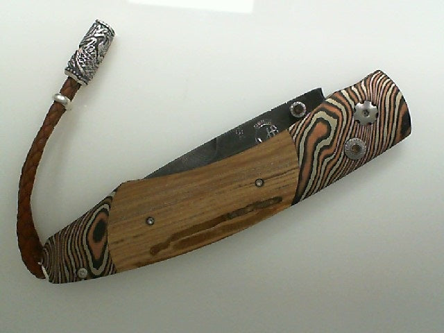 LINCOLN LAW II Spearpoint Tri Color Damascus Mokume Gane Knife Limited to 25 Material: Wood, BY WILLIAM HENRY #B12 LINCOLN LAW II 12/25 #2512-0086