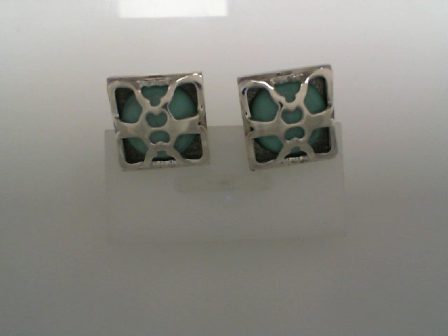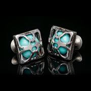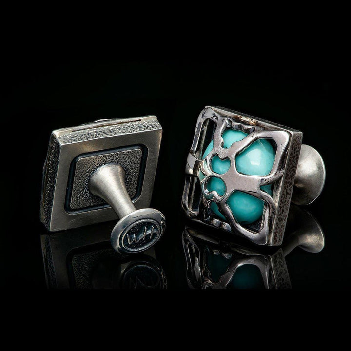 RIPPLE White Sterling Silver Brushed Cufflinks Other With 2 Round Turquoises Cabochons, BY WILLIAM HENRY STUDIOS #CL TURQ