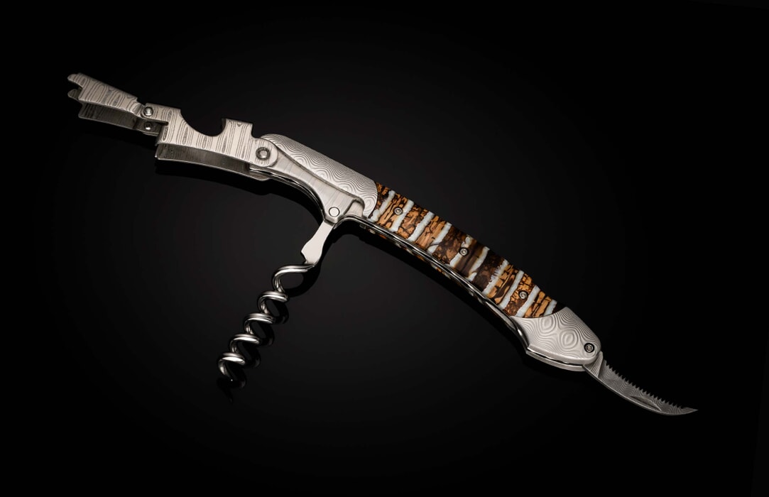 AMPHORA Two-Tone Damascus Sommeliers Corkscrew Knife Other Other Material: Wooly Mammoth Inlay, BY WILLIAM HENRY #S23 MT